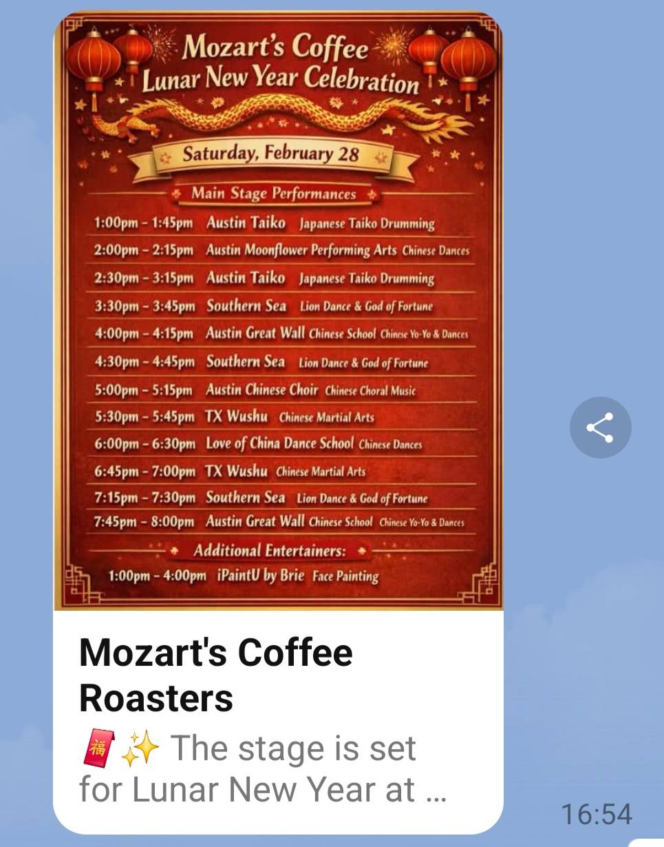 Mozart's Coffee Roasters Lunar New Year Celebration Flyer Ticket Information (left mouse+shift) ~~~~~~~~~~~~~~~~~~~~~~~~~~~~~~~~~~~~~~~~~~~~~~~~ 2025 Performance Schedule